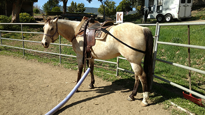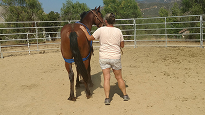 When working externally, although we change what we do every day, we teach through repetition and building on a strong foundation of trust. We use different aids like wrapping, cavillettis, special tack/equipment, essential oils, and supplements while completing different exercises to help balance the horse and build their confidence. Some of these are: